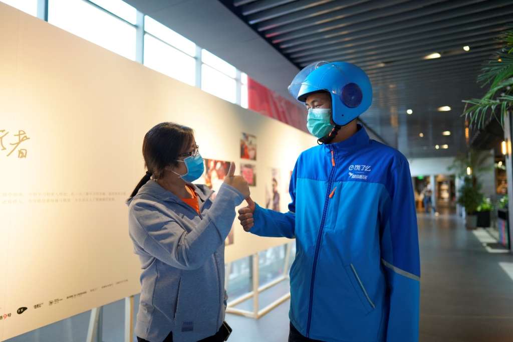 陕西援助湖北医疗队医生滕琰与饿了么无声蓝骑士马海鹏互相点赞