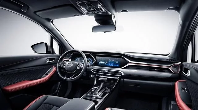 内饰部分,中控台布局与传祺GS4颇为相似,中部双12.3英寸的液晶仪表+液晶触控的组合营造出恰到好处的科技氛围,细节上同样采用多横幅线条勾勒出层次感,并且覆盖上大面积的软质包裹皮革,提供舒适手感的同时让氛围变得年轻不少。