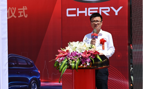 图为奇瑞汽车营销公司副总经理张炳凤现场致辞