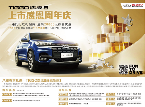 瑞虎8上市2年来,凭借自身强劲的动力、超大的空间、超低的油耗以及超前的智能化配置,展现了强大的产品力,迅速占领市场,赢得了15万车友的信赖,并实现连续多月销量破万的成绩。