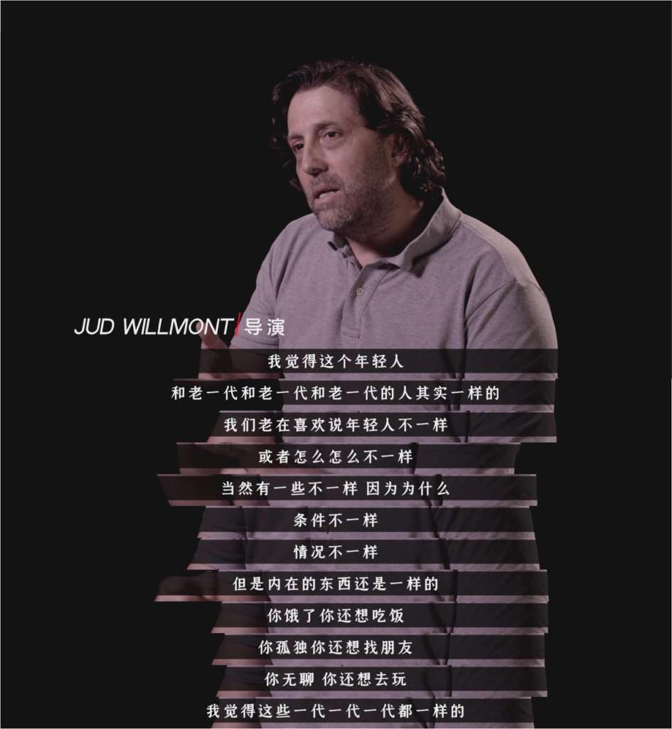 正如短片中来华二十五年的导演JUD WILLMONT所述,“我们老喜欢说年轻人不一样,但内在的东西还是一样的,你饿了还是想吃饭,你孤独还是想找朋友,你无聊还是想去玩,我觉得这些一代一代都是一样的。”