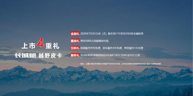 即日起,消费者通过长城汽车天猫/京东官方旗舰店,及长城皮卡品牌经销商购车,还可享上市四重礼: