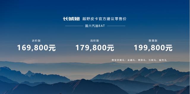 7月1日,第11届西安国际车展开幕,长城炮越野皮卡在陕西区域上市。首期推出三款国六汽油8AT车型,其中四驱进阶版16.98万元,四驱高阶版17.98万元,四驱限量版19.98万,柴油版车型将于7月上市。