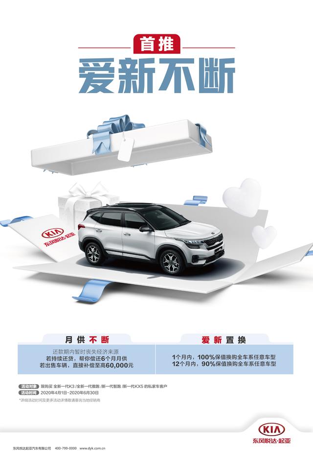 疫情爆发之后,东风悦达起亚及时推出“三项承诺”暖心举措,全面解决用户购车用车后顾之忧,并对一线抗疫人员和湖北地区客户推出特别关爱。为打消客户在购车和置换中的顾虑,东风悦达起亚国内首推“爱新不断”计划,帮保值、帮还贷,进一步强化客户关怀。同时,东风悦达起亚还推出“八大保障”举措,强化经销商应对市场风险的能力,让合作伙伴“定心”。