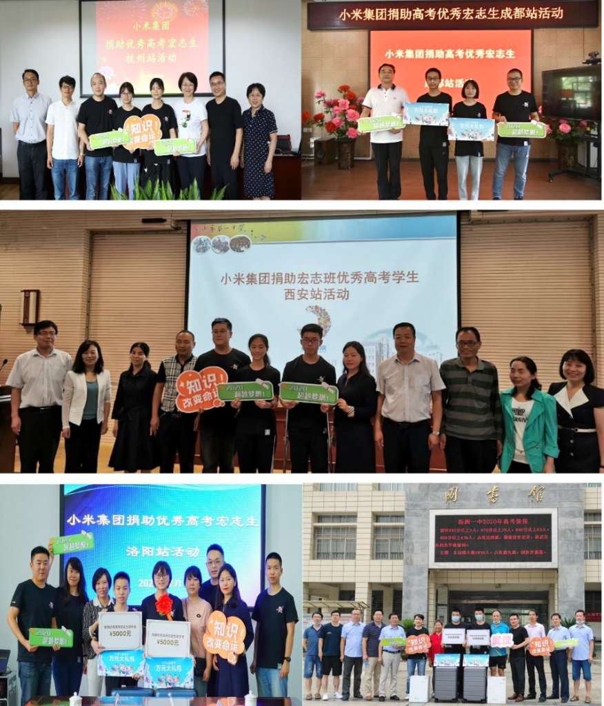 自7月25日起,小米集团相继在西安、杭州、成都、洛阳及武汉五地,向参加今年高考并取得优异成绩的“宏志生”送上总价值达万元的小米助学大礼包及助学金,祝贺他们金榜题名,更表彰其寒窗苦读的精神。
