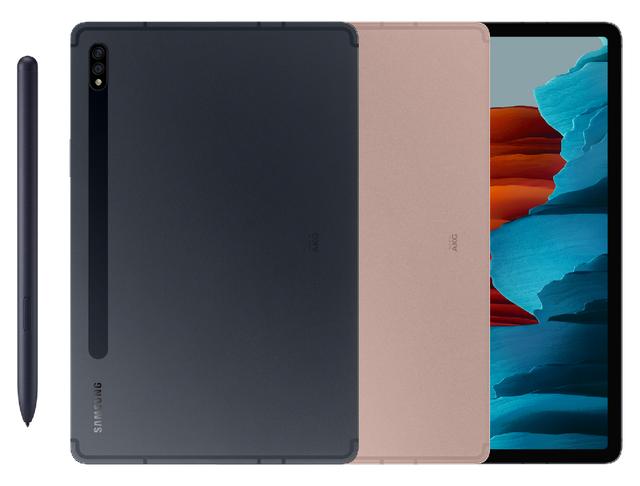 三星Galaxy Tab S7|S7+外形时尚,有两种颜色可供选择——曜岩黑和迷雾金。两款平板电脑将于8月21日开始在部分市场进行销售。
