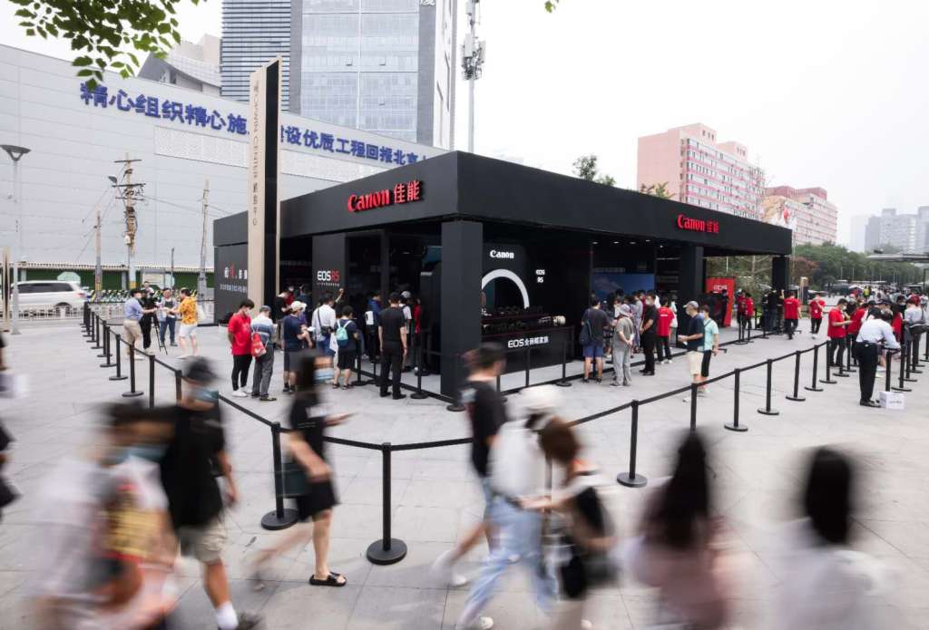 随着佳能新一代全画幅专微相机EOS R5、EOS R6及多款新镜头的登场,在影像行业刮起了一股“回佳”热潮。为了响应北京“潮朝阳消费季”,8月29日,佳能在北京三里屯通盈中心广场启动了第一站“回佳,影像感动”超级体验会,当天吸引了众多专业用户、影像爱好者、时尚达人到场体验,现场设置多个有趣的体验区、大咖讲座区、打印区以及展示区,观众不仅可以体验EOS R家族全系产品,还有广受好评的EOS-1D X Mark III、EOS 5D Mark IV、EOS M6 Mark II等全画幅热门产品。