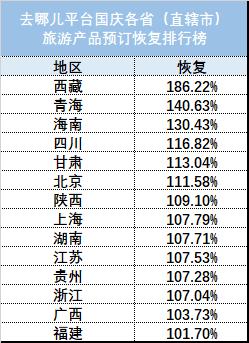 而从全国范围来看,内循环发展模式显著。去哪儿平台上,湖北地区各项旅游产品预订恢复至去年同期的7成以上,新疆地区恢复达到近8成。恢复最好的西藏、青海、海南,在去哪儿平台上旅游产品的预订量同比去年增长3成以上。