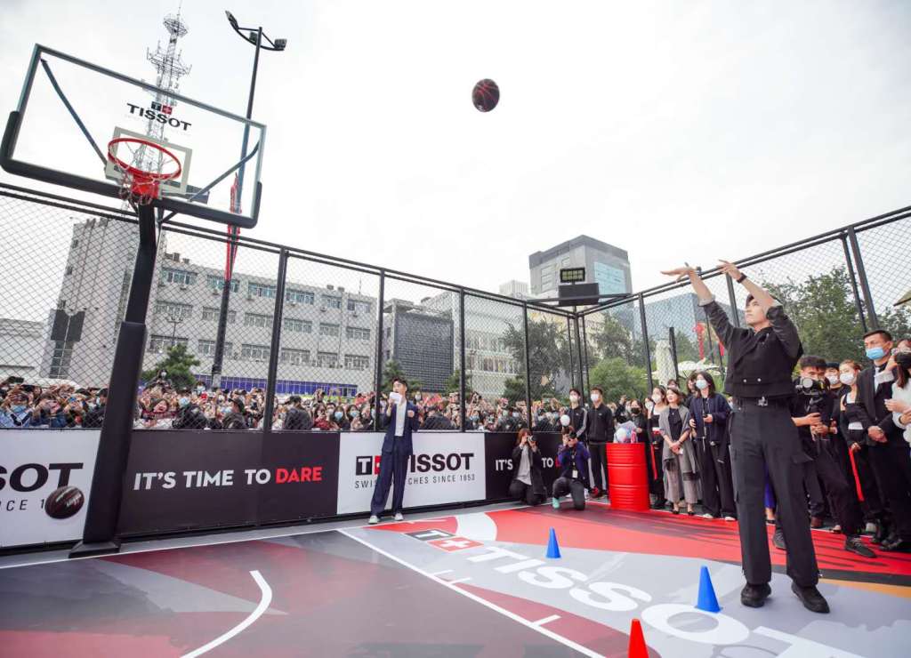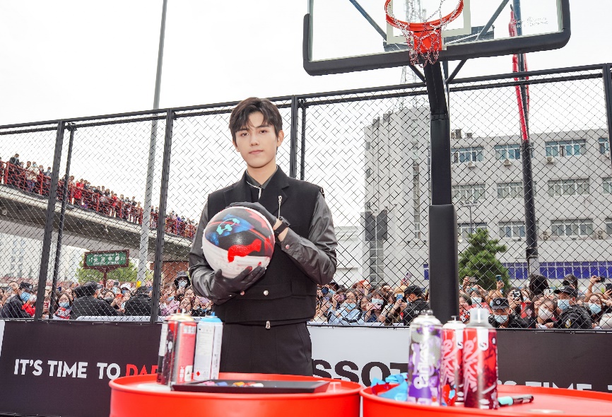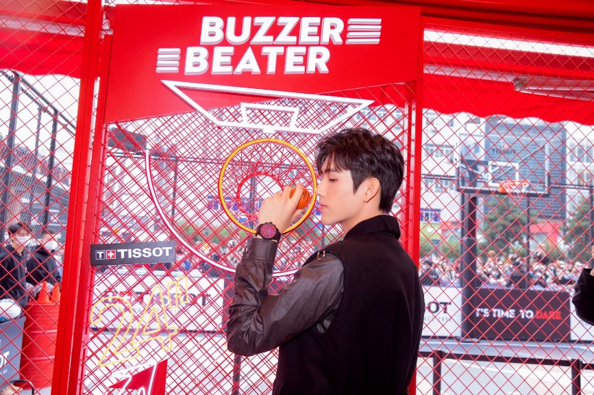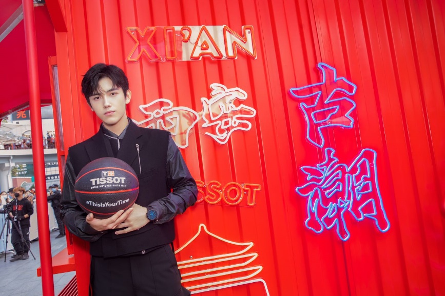 图1:TISSOT天梭全球形象代言人陈飞宇佩戴天梭速驰古潮系列腕表帅气亮相西安篮球城市活动