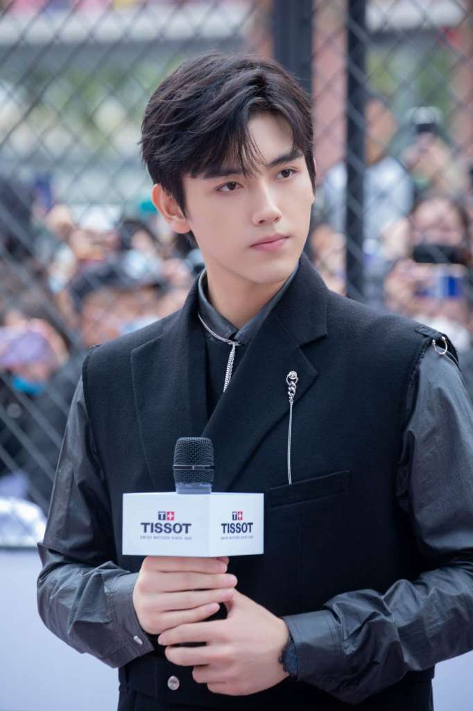 陈飞宇于活动现场佩戴天梭速驰古潮系列腕表,45mm超大表盘搭配复古尼龙表带,不同色彩的碰撞、运动与时尚的结合体现了Z世代打破框架的潮流态度,于腕间书写陈飞宇的个性宣言。