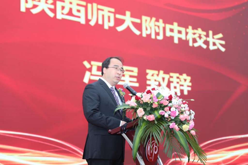 陕西师范大学校长游旭群在致辞中指出,110年来附中风雨兼程、艰苦创业,成就了一代名校坚韧的教育品质。陕西师范大学一直把为基础教育服务作为办学的崇高使命和价值追求,也一直把附中作为一张基础教育的靓丽名片,附中的办学水平,就应当代表着西安基础教育的水平、陕西的水平、甚至西部的水平。希望附中以此次校庆和国家教育评价改革为契机,坚持以师生为中心,以发展为要义,以改革为动力,发扬“西部红烛精神”,不断激发和释放办学活力,为把附中建设成为西部基础教育最亮丽的名片而努力奋斗。