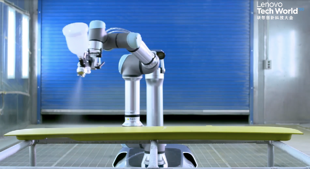 联想打造的晨星工业机器人,在强大的边缘算力和智能支持下,能让工人通过机器人精准地执行远程喷漆工作。