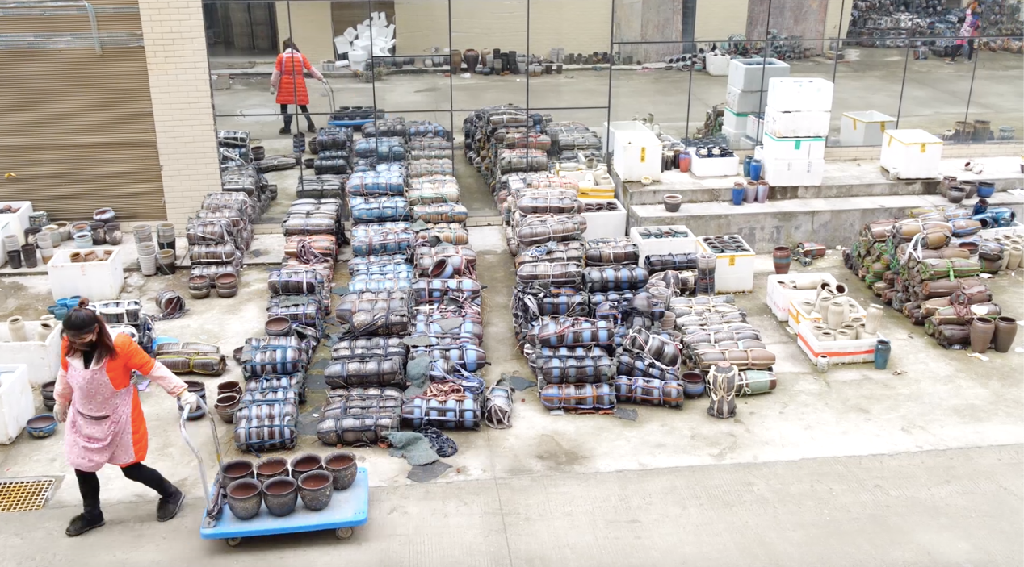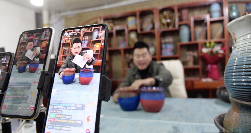 “高度30(厘米),口径15(厘米),价格只要29块8!”……淘宝双12期间,王宁每晚都会在直播间里销售紫砂花盆,边把玩花盆边介绍上新、秒杀等玩法。十几米外的备货仓库里,四十多名女打包员工动作利索,把一个个花盆包得细致严实,通过物流车送到全国养花爱好者手中。