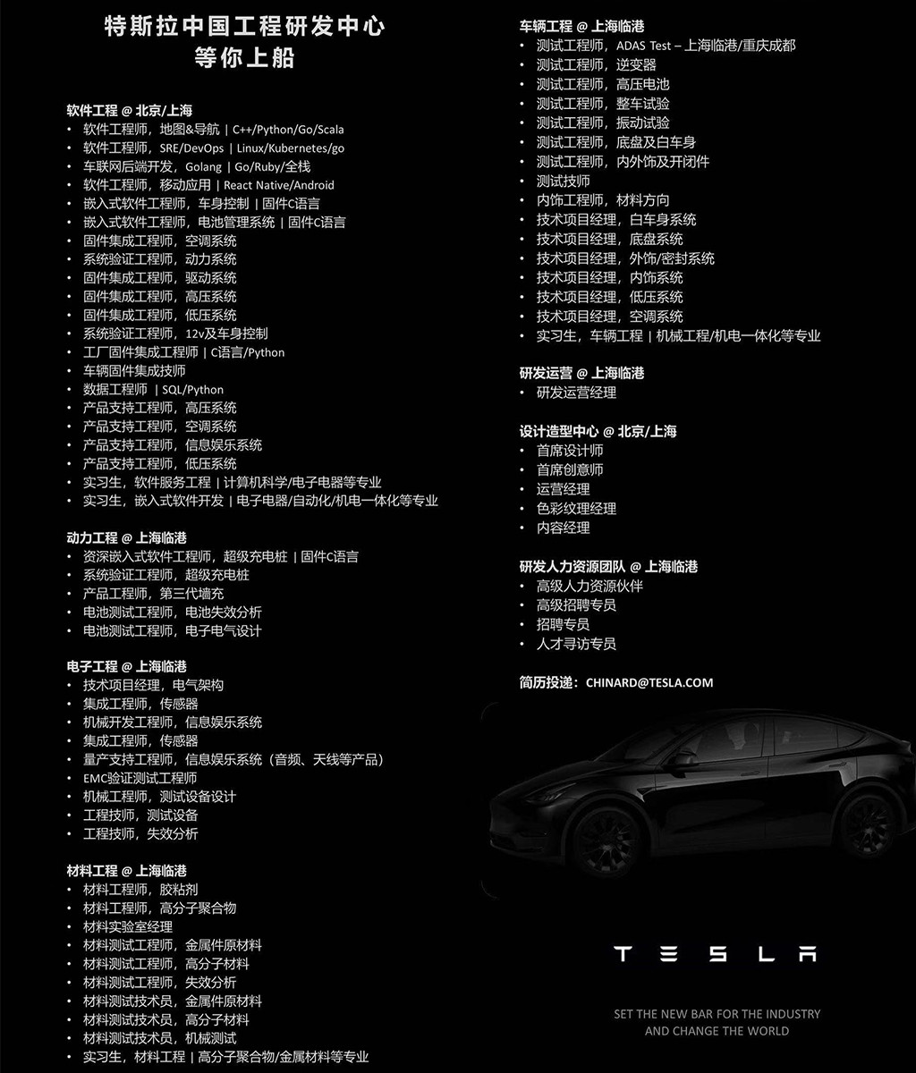 除了经济效益外,特斯拉作为全世界新能源车企的标杆,在华建厂自然会从国内大量招聘。通过上图就能看出,特斯拉目前正在大量招聘软件、动力、电子、材料、车辆、设计等领域的工程师人才。要知道的是,目前中国可是全世界工程师人才数量最多的国家。特斯拉的到来不仅缓解了当下严峻的就业压力,同时还能为中国培养出更精尖的工程师人才,而这些红利的意义可一点不小于特斯拉单一品牌带来的收益。