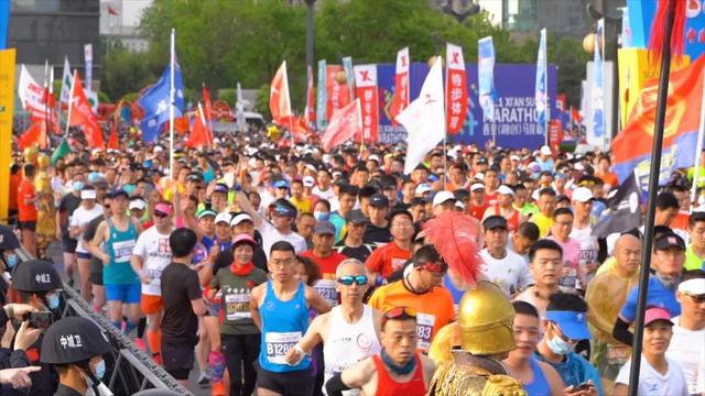相约西安,筑梦全运。4月17日上午7:30,“我要上全运”百场马拉松暨“一带一路”陕西2021西安(融创)马拉松赛在永宁门鸣枪开跑。