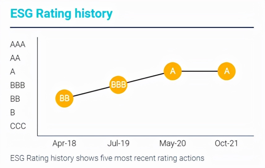 MSCI(明晟),即摩根士丹利资本国际公司(Morgan Stanley Capital International),是一家提供全球指数及相关衍生金融产品的国际公司,MSCI指数是全球投资组合经理最多采用的投资标的。MSCI ESG评级是目前认可度最高的、使用范围最广的,评级结果从高到低分为AAA、AA、A、BBB、BB、B、CCC七个等级。由于MSCI ESG评级的独立性、一致性和公开性,其评级结果已成为全球各大投资机构决策的重要依据。