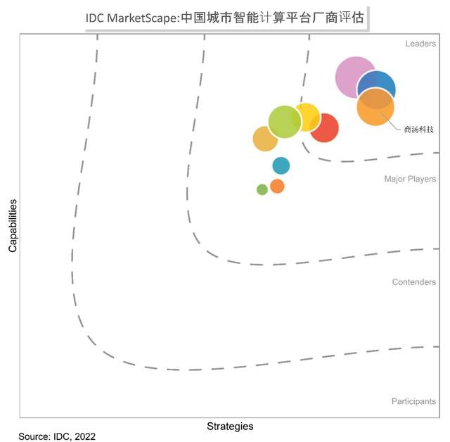 近日,IDC发布《IDC MarketScape: 中国城市智能计算平台厂商评估,2022》报告,商汤科技成功入围领导者象限,并在战略能力厂商排名中保持第一。