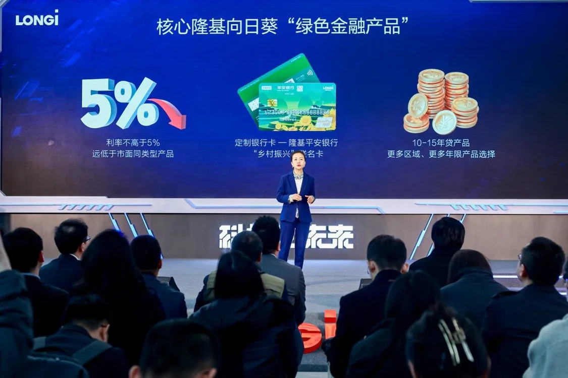 隆基向日葵2.0的最大亮点是在金融解决方案上,扩充了与平安银行的深度合作,为用户提供10-15年绿色金融产品服务,给终端百姓及经销商带来更多选择,也能释放更多的利润空间。